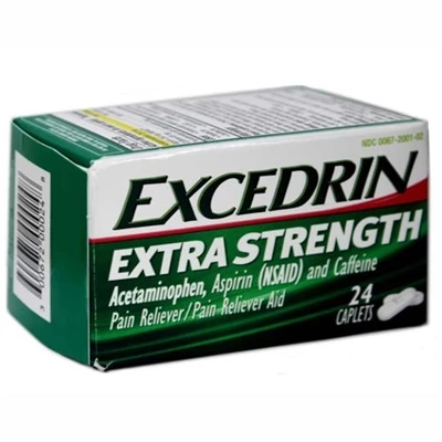 Excedrin Extra Strength Pain Reliever 24 Caplets Excedrin Extra Strength combines three active ingredients to provide a strong over the counter medicine for headaches and other kinds of pain. It has a fast acting formula that delivers extra strength headache relief. For some, relief starts in as little as 15 minutes to help you get back to your day.