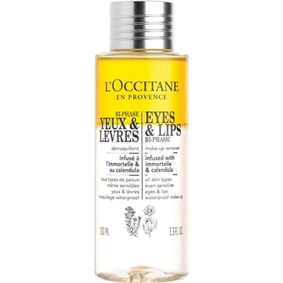 LOccitane Eyes And Lips Bi Phasic Makeup Remover 3.3oz / 100ml This Eyes and Lips Bi Phasic is infused with immortelle and calendula from the south of France. Synonymous with LOCCITANE, immortelle the flower that never fades has been known for years for its skin benefits and is one of our star ingredients. Calendula, meanwhile, is known for its soothing properties. This makeup remover is as comforting as it is effective at removing makeup and impurities, leaving skin feeling perfectly cleansed