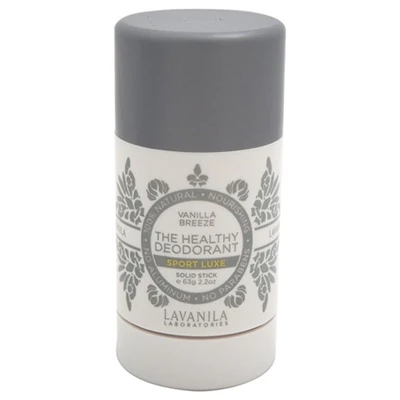 Lavanila The Healthy Deodorant Sport Luxe Vanilla Breeze 2.2oz / 63g This deodorant was created for life in motion. Lavanillas proprietary, awardwinning beta glucan technology is infused with SmartSport for highperformance defense and nourishment, and bursts with longlasting vanilla breeze freshness. SmartSport technology blends antibacterial, antimicrobial, and nourishing actives including rosemary, sage, Japanese green tea, and organic baking soda and has been tested under extreme conditions to break down sweat molecules and deliver superior, invisible, allnatural odor protection. The crisp vanilla breeze scent blends white jasmine with watery honeydew, green apple and a whisper of powdery vanilla.