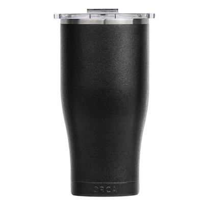 Orca Chaser Tumbler Black Designs May Vary 27oz Whether for work, play, or another adventure, the ORCA 27oz Chaser will keep your beverage icy cold or piping hot all day long. And the clear spill proof lid makes it easy to see when its time for a refill. It also has a tough, powder coated finish that is built to last.