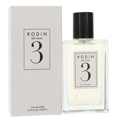 Rodin 3 by Rodin Olio Lusso for Women 3.4oz Eau De Toilette Spray Rodin 3 by RODIN Olio Lusso is a Floral Woody Musk fragrance for women and men. Rodin 3 was launched in 2017. Top note is Geranium; middle notes are Orris, Jasmine and YlangYlang; base notes are Musk, Sandalwood and Patchouli.