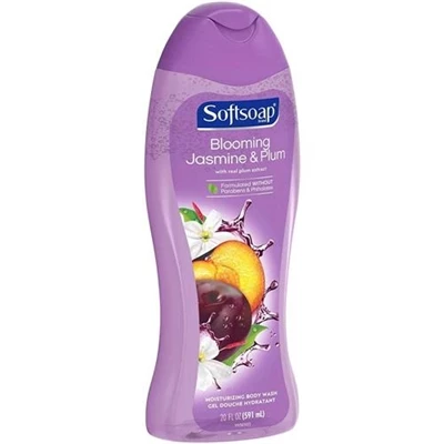 Softsoap Blooming Jasmine And Plum Moisturizing Body Wash 20oz / 591ml Make life more bubbly with Softsoap Moisturizing Body Wash, Blooming Jasmine and Plum. Made with real plum extract, this energizing body wash will help retain your skins natural moisture all while giving you a refreshing shower.